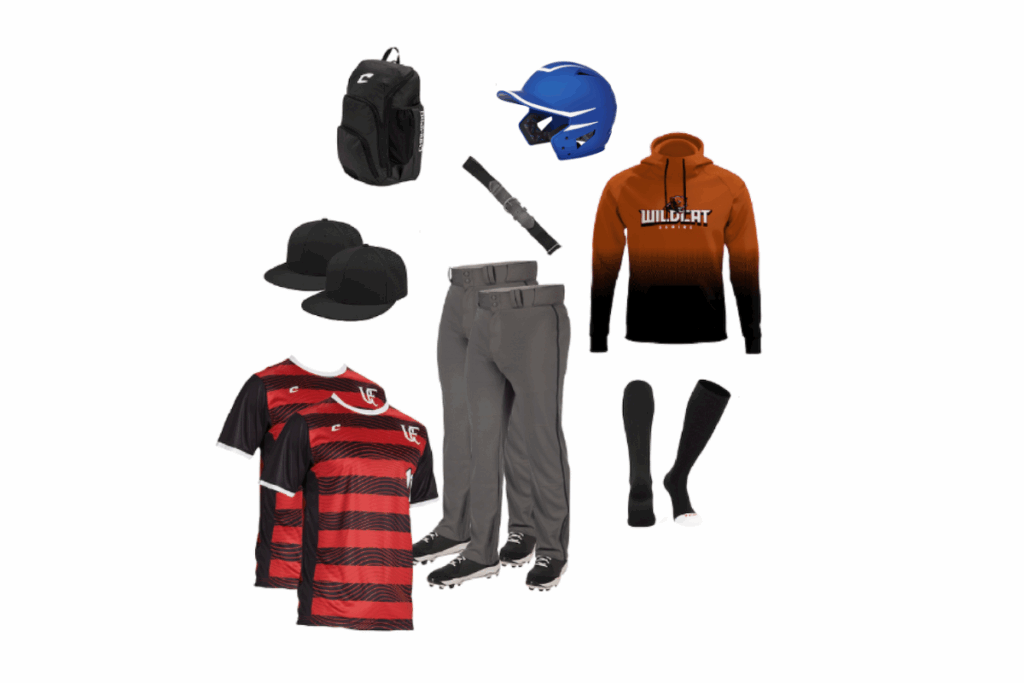2 Jerseys | 2 Pants | 2 Hats | 1 Hoodie | 1 Socks | 1 Belt | 1 Backpack | 1 Batting Helmet